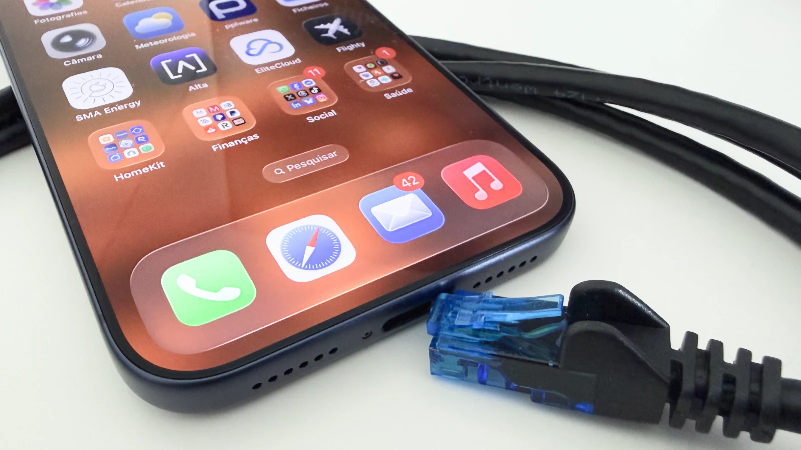 Sabia que pode ligar o seu iPhone à rede por cabo?